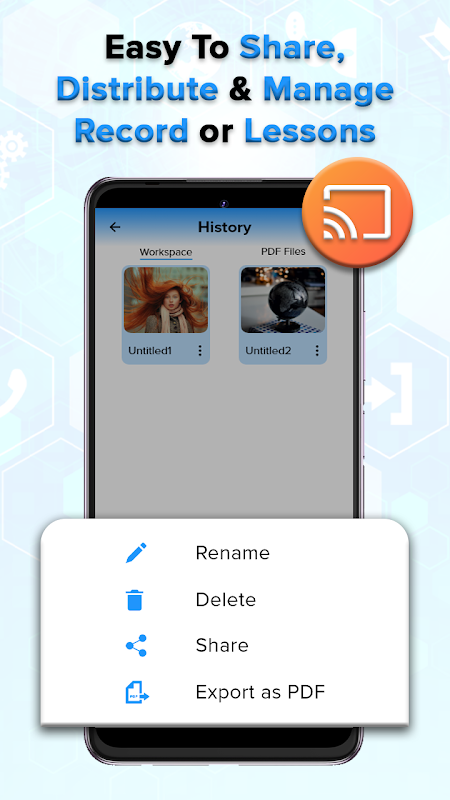在历史记录中,您在白板上绘制的所有工作、素描书写和不同的形状都可以保存在工作区选项中,使您的历史成为您可以随时随地查看的历史。您可以转换 pdf 的工作区历史记录。转换 pdf 您可以分享您的朋友、家人和您周围的所有环境。