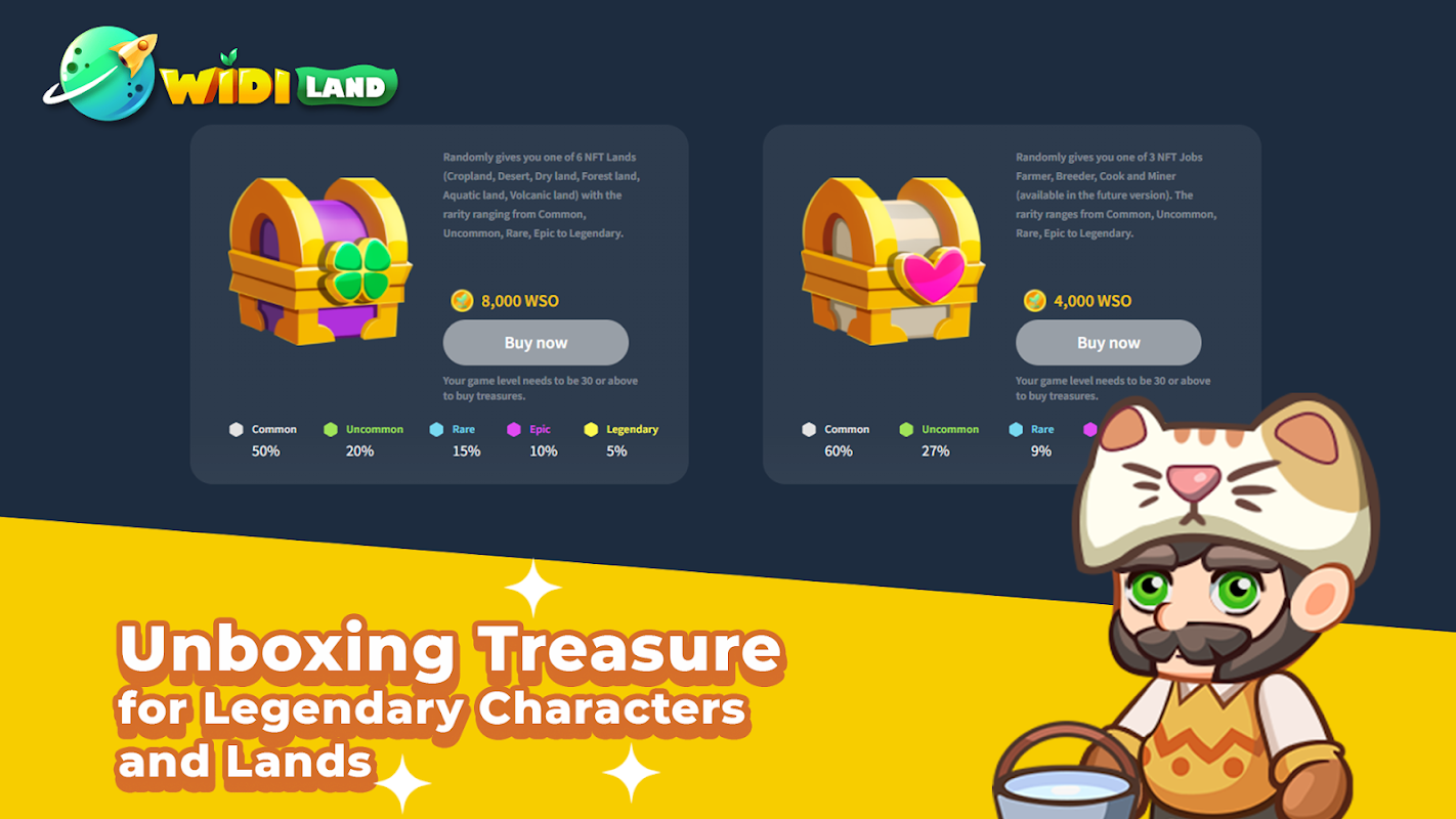 WidiLand是一款区块链技术驱动的游戏,传达关于保护环境的人道信息,明智地使用有限的资源,并获得WidiLand的生态系统加密货币作为奖励