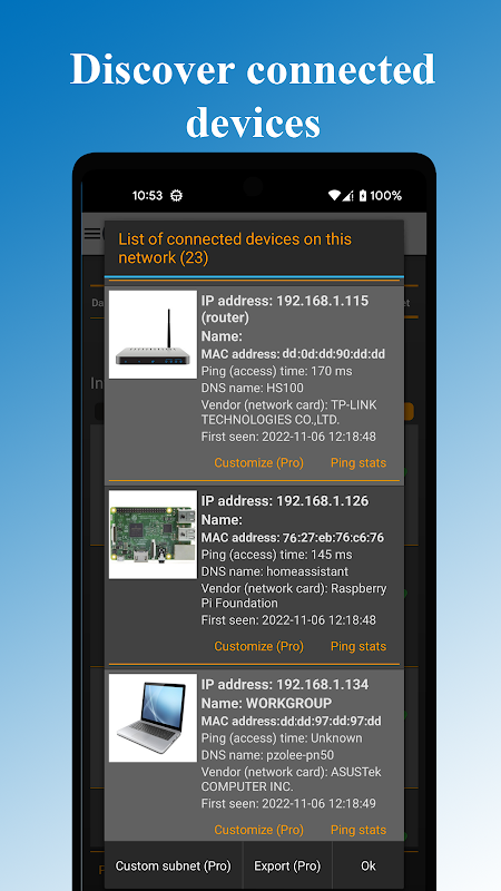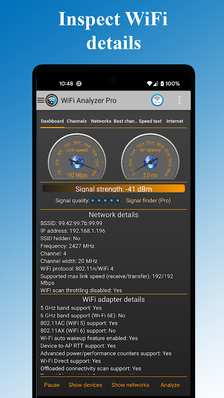 WiFi Analyzer Pro 提供有关您网络的最重要信息,显示您周围的所有连接设备和任何 WiFi!