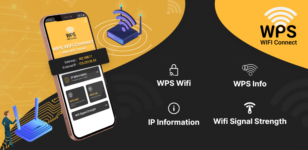 这是一个了不起的 WPS WiFi Connect : WPA 测试器应用程序,它显示有关 WPS WIFI 的所有信息,并一键获取有关您附近 WPS 协议和 WIFI 信息的所有 IP 地址信息。