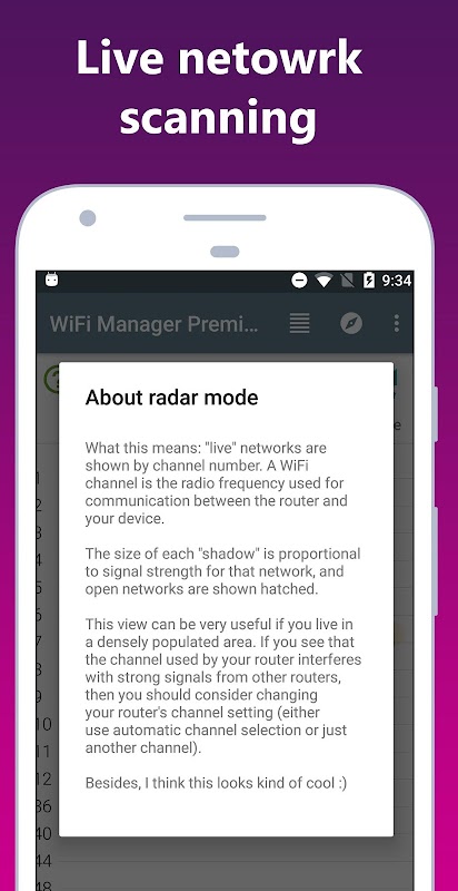 所有其他(必不可少的)功能都是免费的:具有详细连接信息的窗口小部件(四个大小,两个免费主题),扫描并连接到网络,网络列表视图,网络信号雷达,“最佳网络切换器”。