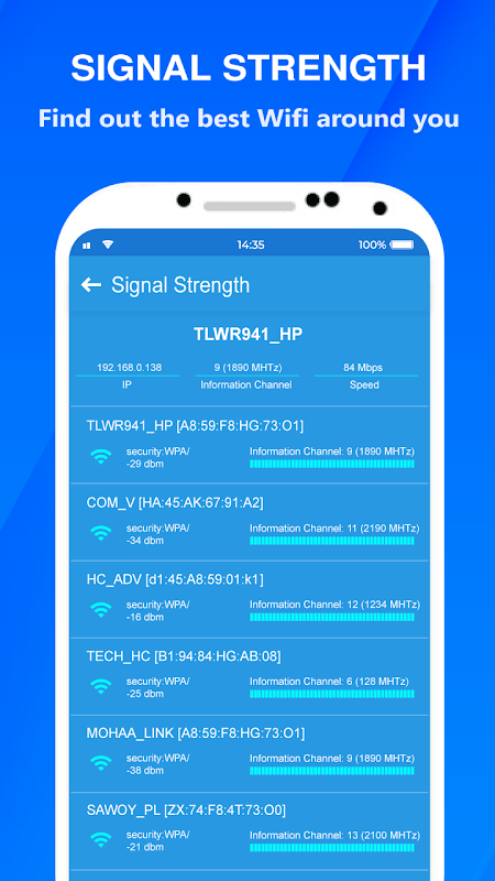 WiFi 密码显示 - WiFi 万能钥匙和 WiFi 管理器通过检查周围的 Wi-Fi 网络连接来帮助优化您的 Wi-Fi 网络。 Wi-Fi 分析仪为您的网络推荐最佳信道。最佳 WiFi 分析仪为您提供最有用的优化信息,帮助减少干扰并提高连接互联网速度测试和稳定性。 Wi-Fi 网络分析仪通过分析 WiFi 网络来帮助提高网络性能。