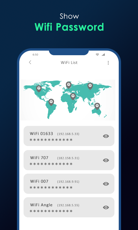 显示 WiFi 密码应用程序是一个全面的解决方案,可轻松管理和查看您的 WiFi 密码。这款功能强大的应用程序具有 WiFi 密码查看器,可让您立即访问和显示保存的 WiFi 密码,从而更轻松地管理和记住您的网络凭据。该应用程序还具有内置 WiFi 查找器和 WiFi 地图的 WiFi Master 功能,可帮助您轻松定位并连接到可用网络。利用全景 WiFi 应用程序全面了解您的网络环境,并使用 Ping 网络工具解决问题。
