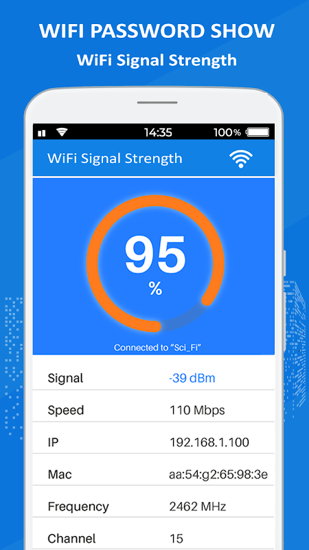 •检查WiFi信道信号强度,并在您周围找到最佳信号WiFi。