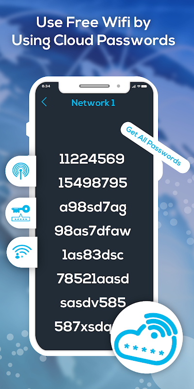 使用强大的算法,您可以使用 WiFi 密码密钥大师中的密码生成器生成密码:共享 WiFi 密码。为您的 WiFi 和其他平台选择最弱、更弱、最弱或变得更强、更强、最强的密码。