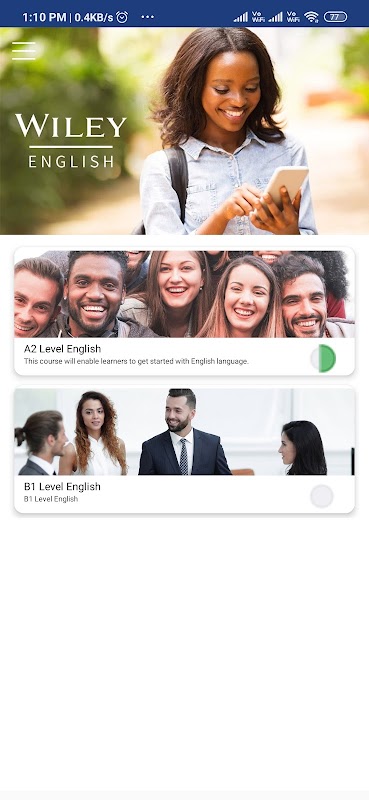 欢迎使用Wiley English,这是基于移动的独家自学体验!