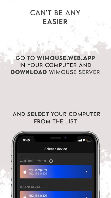 WiMouse transforms your phone into an all-in-one wireless controller, providing a stable and low-latency connection through your Wi-Fi local network.