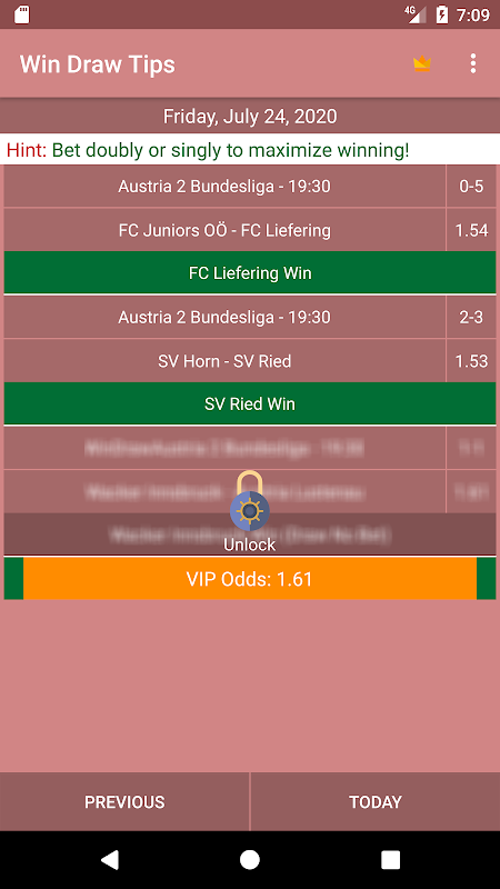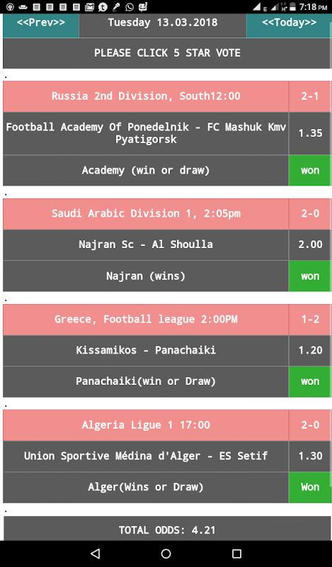 This app provides you with well analyze and seleted tips based on mathematical and statistical methodologies. The games ranges from "win or draw, home to win or draw (1X), away to win or draw( X2) and either side to win (12)".
