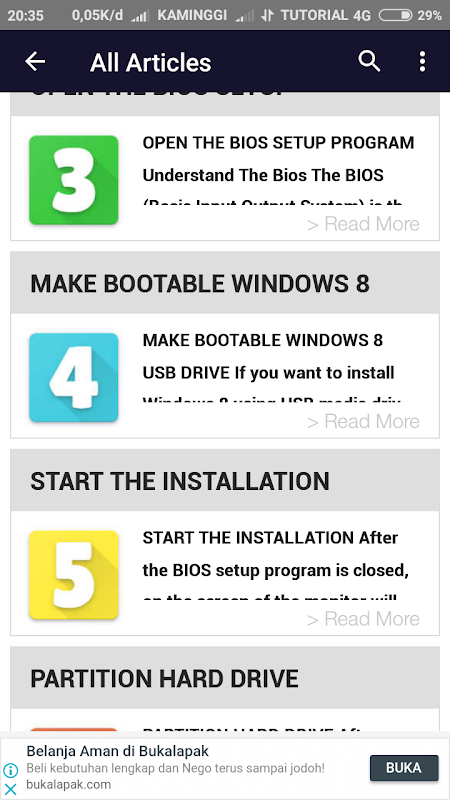 Tutorial in this application was compiled with a lightweight, simple, and easily understood especially by beginners. The preparation of the tutorials in this application based on the experiences of his own constituents and described from the step by step. So you need not doubt the quality of the content of this ebook application because we will not write it if we don't know, or ever do it myself. Tutorials that we present in this very complete application. So it can help you learn to do a reinstall Windows operating system 8/8.1 correctly so your computer went well. This eBook explains all phases for the sake of the stages that must be done, starting from: