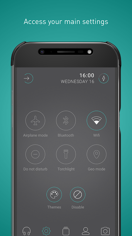 •快速进入主设置,如主题颜色变化,飞行模式,蓝牙,WIFI,地理模式,火炬等。