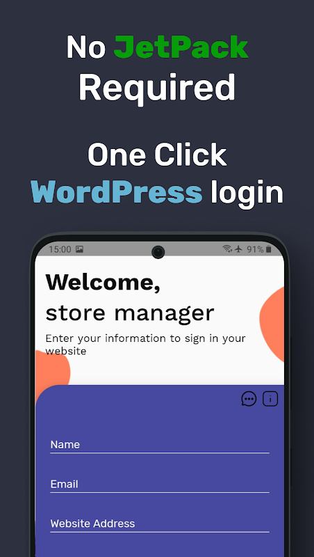 您不需要安装 Jetpack 或任何插件!我们有一个一键式 WordPress 登录。或者您可以从 WordPress 面板创建 API 密钥。在应用程序中输入密钥并享受它。您不需要安装 Jetpack!