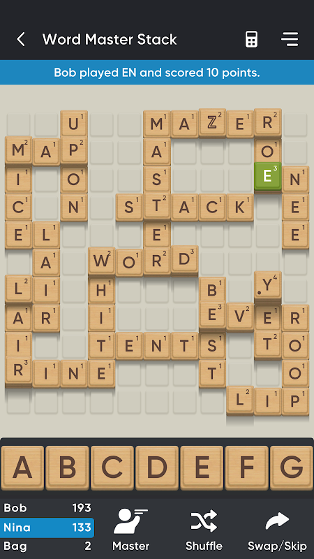 每个字母的得分取决于其所在堆叠的高度。这意味着,您堆叠的字母牌越高,得分就越高!