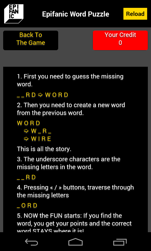 It is a word creation game like from _ _T you create BAT. Once you've found the correct word, you derive new words from it, like creating RAT changing the first letter and get your points.