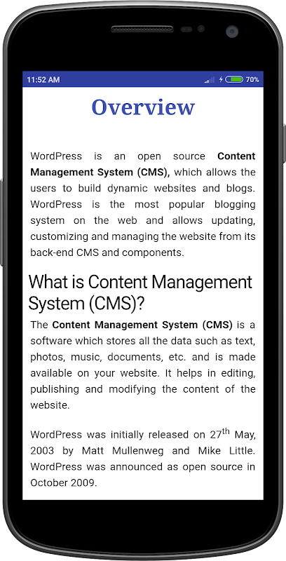 Wordpress Tutorial app collections of Categories are below and provide all this Topic Like,