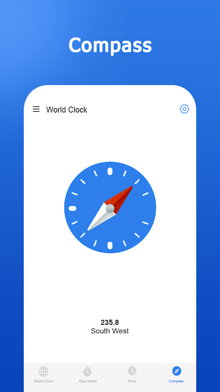 Android 的世界时钟还为您提供指南针,用于导航方向。 如果您想了解朝拜方向,请使用指南针并导航朝拜方向。 这对穆斯林非常有用,因为他们必须根据朝拜方向进行祈祷。 因此,您可以借助此定向指南针找到方向——适用于 Android 的智能指南针。
