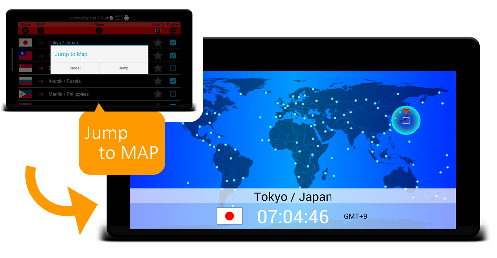 当你触摸世界地图,在那里你想知道时间,地点的时间显示为数字时钟。