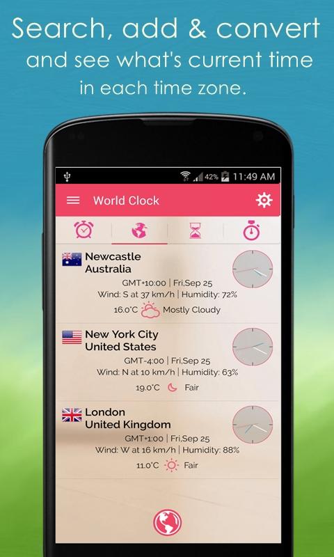 此应用程序是完美的世界时钟和 会议策划者,找到世界各地5000个城市的当地时间和时区信息时区转换器。