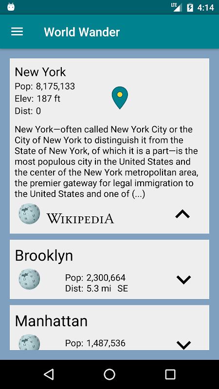你有没有旅行过并想知道你在哪里?你附近有什么?当您环游世界时,World Wander 可以告诉您附近有哪些城市。
