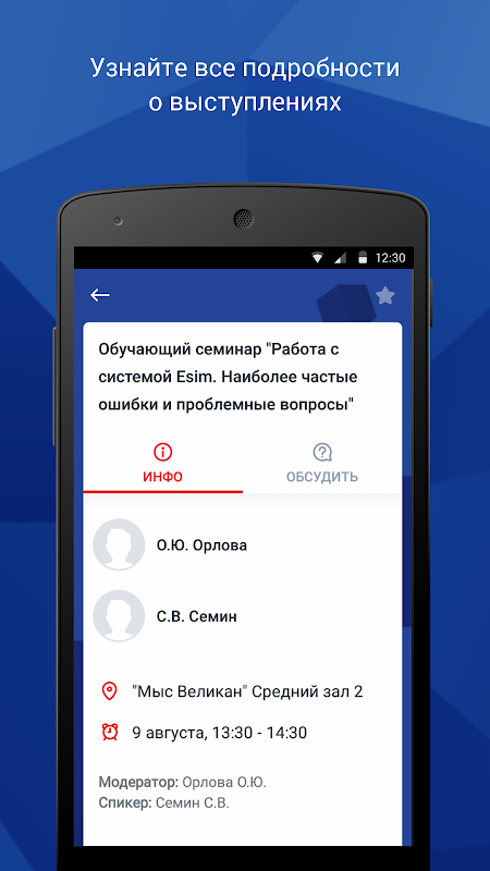 - составить собственную программу и получать оповещения о начале выбранных сессий деловой программы;