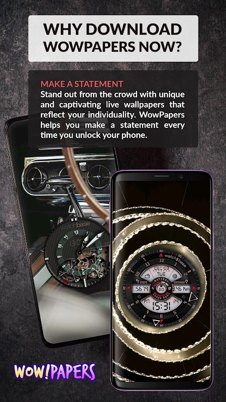 ✓ 发表声明:用反映您个性的独特而迷人的动态壁纸给您的朋友留下深刻印象并从人群中脱颖而出。 WowPapers 可以帮助您在每次解锁手机时发表声明。