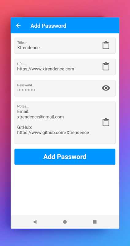 It's hard to trust anyone with your passwords, especially when it comes to services that use the cloud or store your passwords on their servers. That's why X:/Passwd has absolutely no access to the internet, allows for local importing and exporting of your vault, and doesn't rely on any external services or servers.