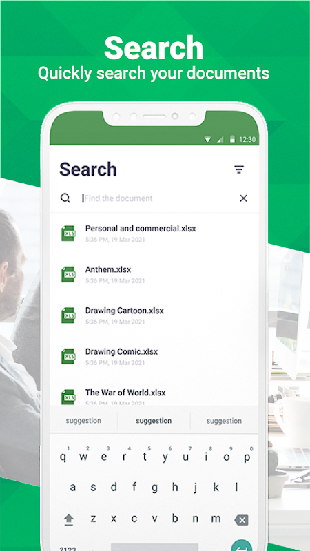 This app lets you easily view all document file, Excel File, spreadsheets. It also supports much compatibility with office formats including DOC, DOCX, TXT, XLS, XLSX, PPT, PPTX and PDF reader