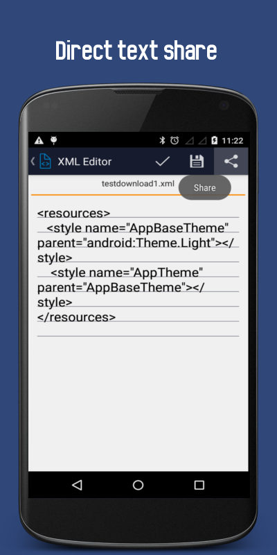 应用程序列表中的所有XML文件呈现在手机上。我们可以使用这个应用程序来创建,编辑,下载,验证和共享(文本)的XML文件。