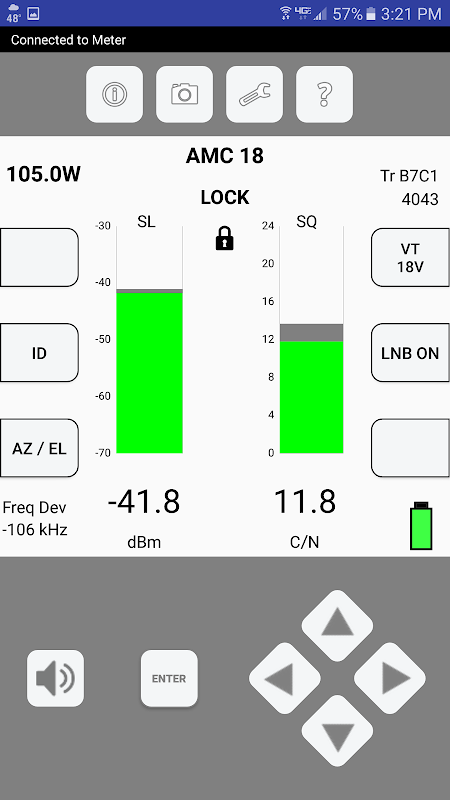 应用实例:您的XR-3卫星测量仪,在对XR-3接地座的位置和电源连接。然后通过WiFi配对XR-3到您的Android移动设备。与您的手机爬梯子上的袖标,运行XR-3远程应用程序,并检查信号水平和质量,并重新调整你的卫星天线,而不必首先从LNBF删除LNBF头和临时连接短同轴电缆跨接电缆您的卫星米。该XR-3仪表的屏幕镜像您的移动设备上,使您能够识别卫星,切换到不同的卫星和转发器和测量RF电平,解调后的信号质量和LNB本振漂移。这种方法对于卫星技术人员提供的安全性和速度上的优势。