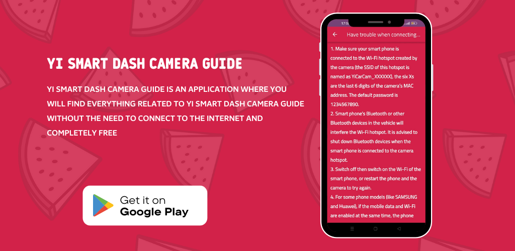 注意:此移动应用程序是一个指南。它不是官方应用程序或官方应用程序产品的一部分。下载本指南以了解 YI 智能行车记录仪。