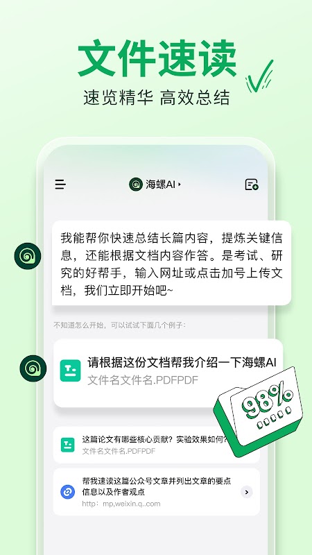 - 文件快速读取,一键上传文件,小海螺一键帮忙做总结、查答案。