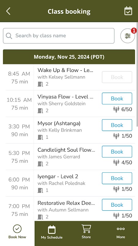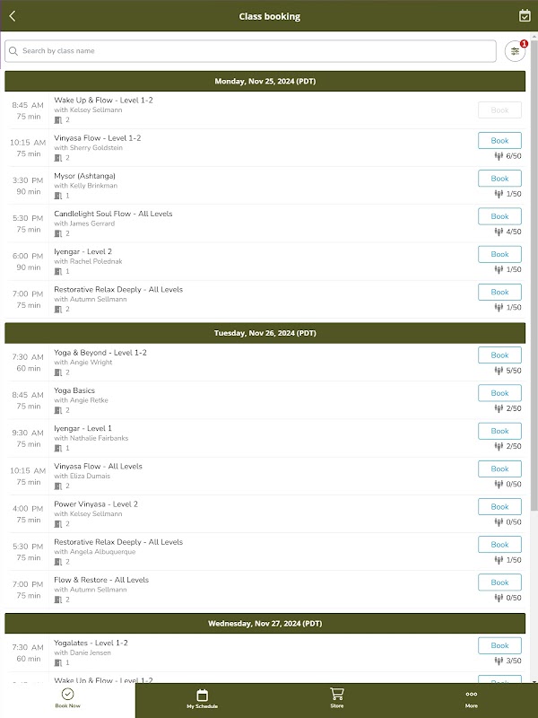 下载应用程序以查看瑜伽保护区的时间表和预订课程!