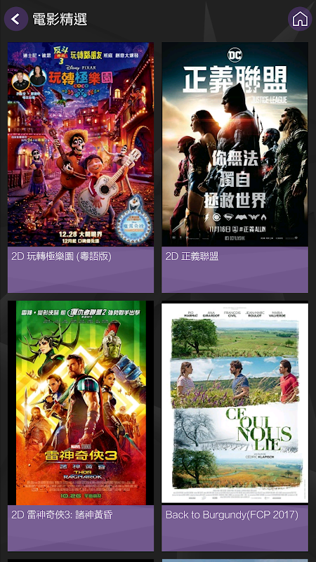 「電影精選」:即時瀏覽最新電影資訊,場次以及購票服務。