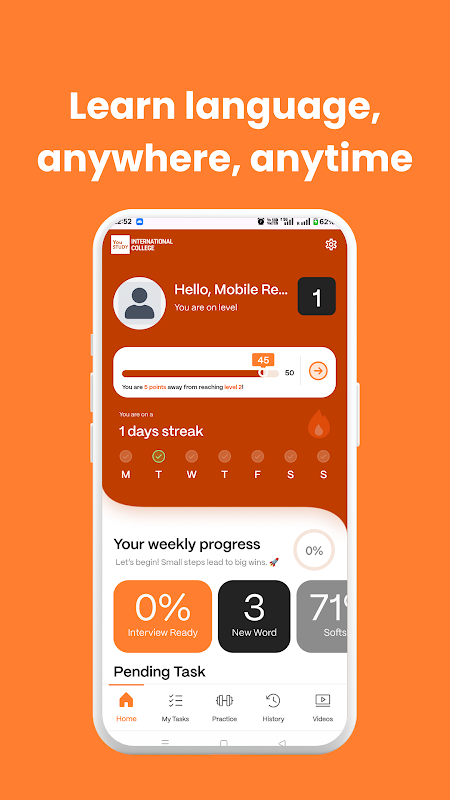 YouStudy国际学院的学生可以免费使用该应用程序。要创建帐户并开始使用该应用程序,学生应联系管理人员。