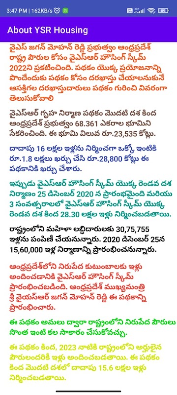 This app provides clear information about the YSR HOUSING SCHEME implemented in Andhrapradesh.