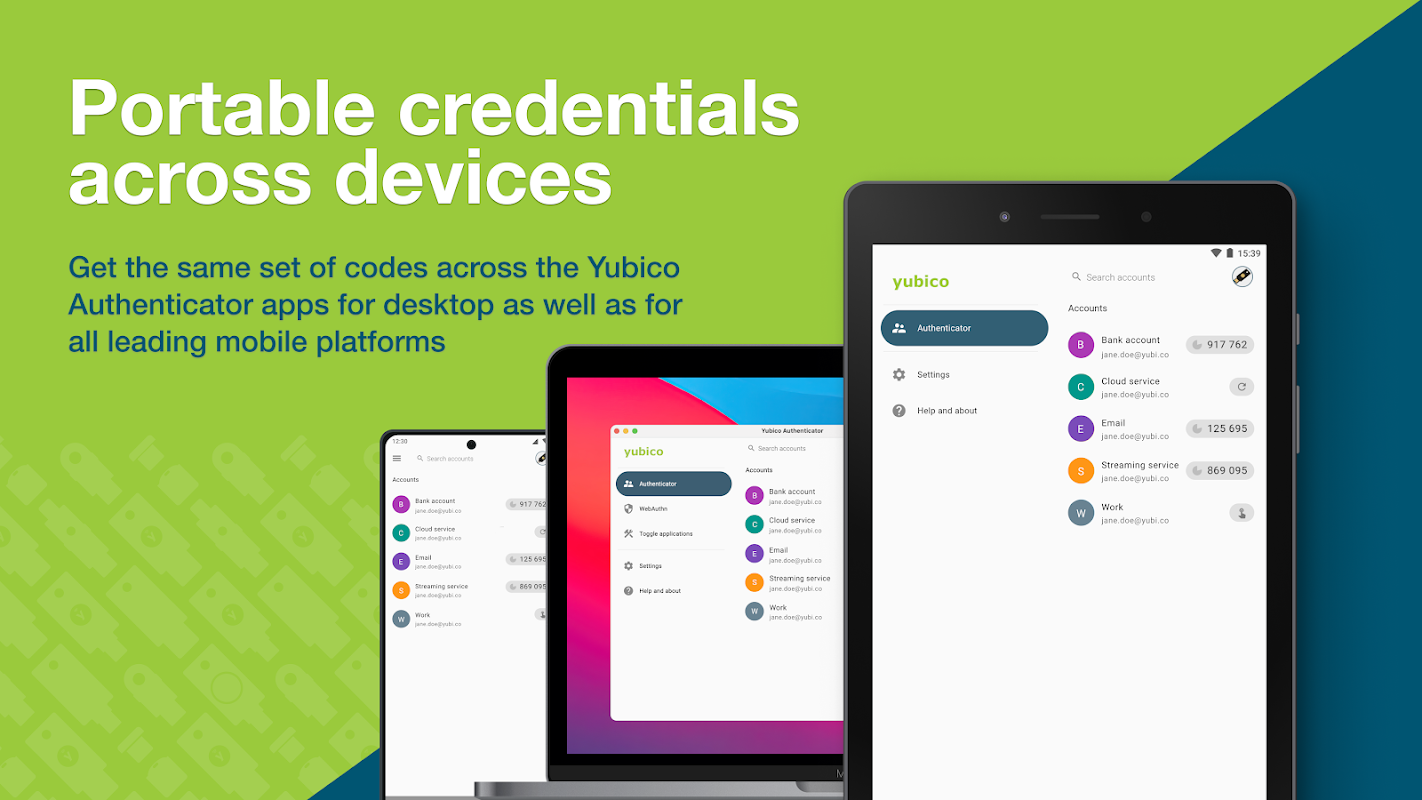 便携 –在我们其他适用于台式机和所有领先移动平台的 Yubico Authenticator 应用程序中获取相同的代码集
