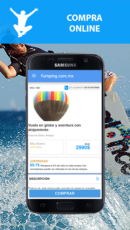 Yumping把你的手达八千八百活动探险旅游和极限运动在墨西哥,所以你可以检查,打电话或从你的Android手机或平板电脑你会发现,无论你是完美的活动,随时随地轻松且安全地预订!潜水,卡丁车,骑马,疑难杂症,喷气滑雪,露营,跳伞,飞机飞行,冲浪,沙滩车,导游,徒步旅行和许多更多...