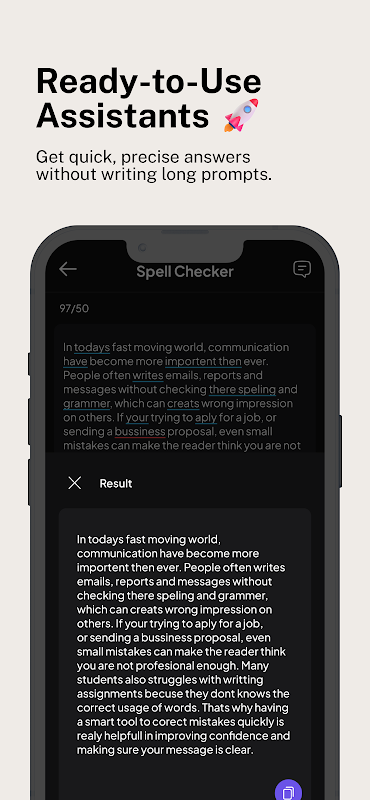 ZapAI 的设计理念是清晰快速。您无需复杂的提示或冗长的指令。您可以自然地提问,上传 PDF 文件,选择现成的助手,即可获得清晰易懂、可操作的结果。无论您是简化研究的学生、审阅合同的专业人士,还是润色内容的创作者,ZapAI 都能适应您的工作流程,每天为您节省时间。