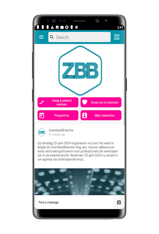 立即下载官方 ZwembadBranche Dag 应用程序。有了这个应用程序,您就可以完全准备好迎接我们的一天了。登录即可查看哪些其他同事即将参加、您可以期待哪些公司以及研讨会的安排。