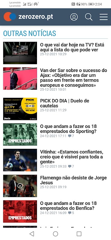 App that offers the latest news about football and entertainment.