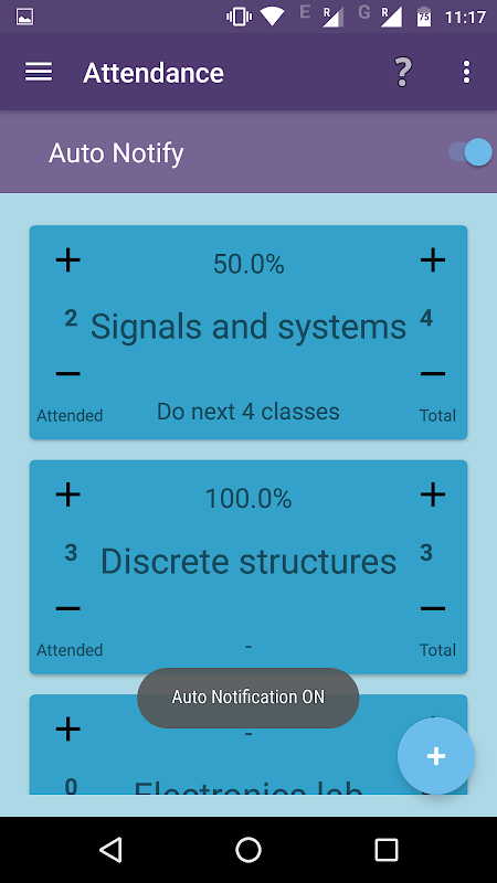 Estimate your attendance daily by auto notification daily at 4 pm or manually for each subject