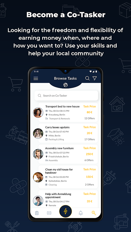 So if you're interested in an easier way of finding flexible new work opportunities around your schedule: Download the app, get verified, build your profile with your professional experience, send offers on task ads, and start earning money as a Co-Tasker!