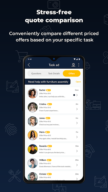 Check out offers sent to you by local professionals. Compare profiles, reviews, quotes, and book your preferred Co-Tasker.