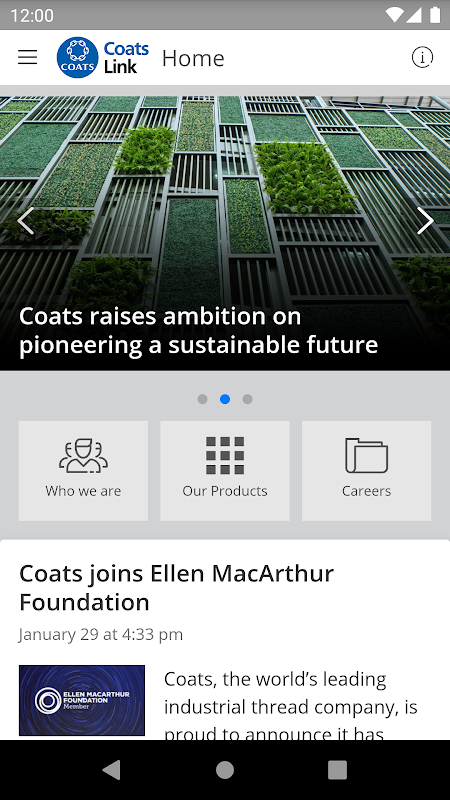 Coats Link will help you keep up to date with the latest news and information from Coats, the world's leading industrial thread company. In the app you will find information about the company as well as our recent news releases and media coverage.