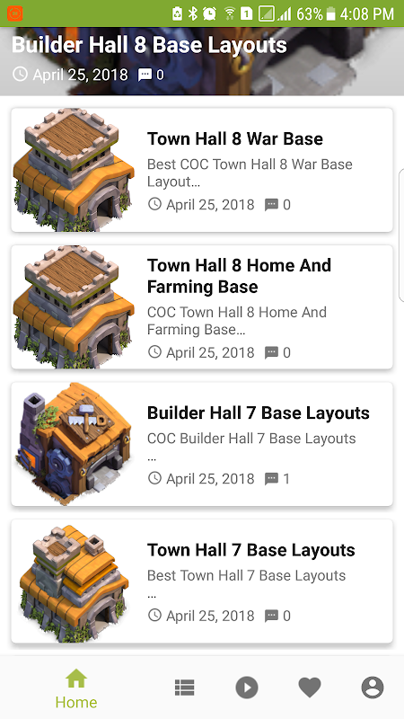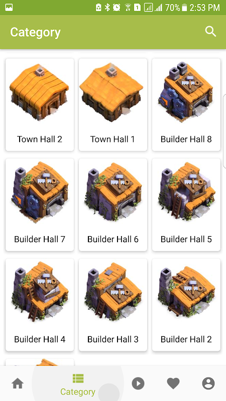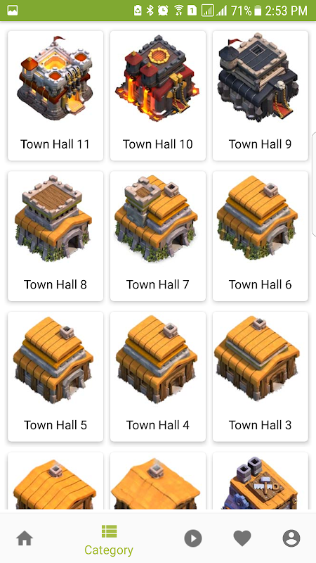 This app is best for COC base layout design. It contains all Town Hall and Builder Hall different category bases (War, Trophy, Hybrid, and Farming).