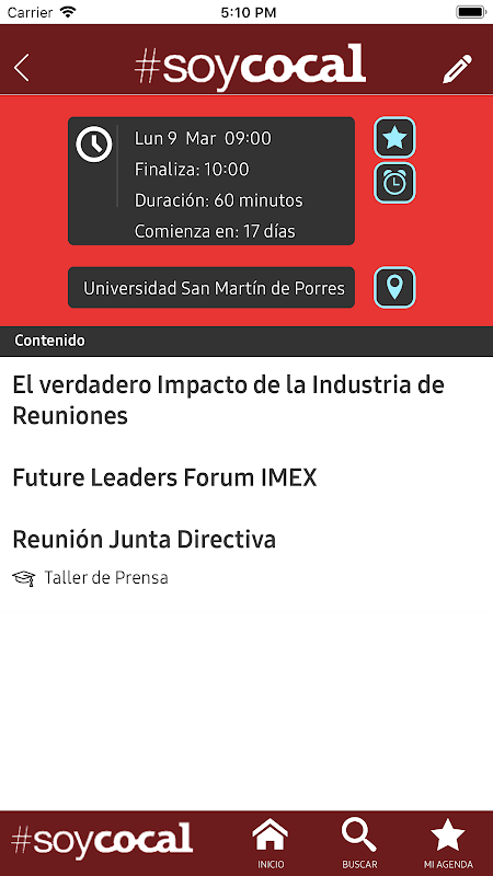 -Permite crear tu propia agenda y recordatorios de sesiones que interesen.