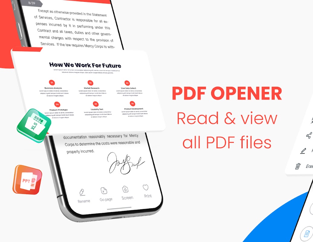 This all-in-one file viewer works smoothly with Office files and enables you to quickly process documents in any format, including PDF, DOC, DOCX, XLS, XLXS, PPT, TXT, and others. It can automatically search through the files on your phone and group them into the correct folders so that you can easily find and work with them. You can access Office, read PDFs, and read all documents. You can open any file or see any document on your mobile device with the aid of the all document viewer software.