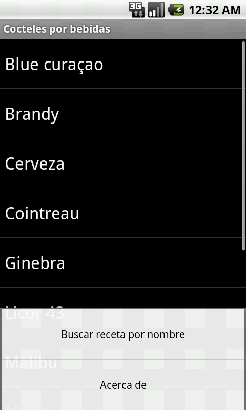 ahora con un buscador de cócteles por nombre. accesible desde la pantalla principal, pulsando el botón menú