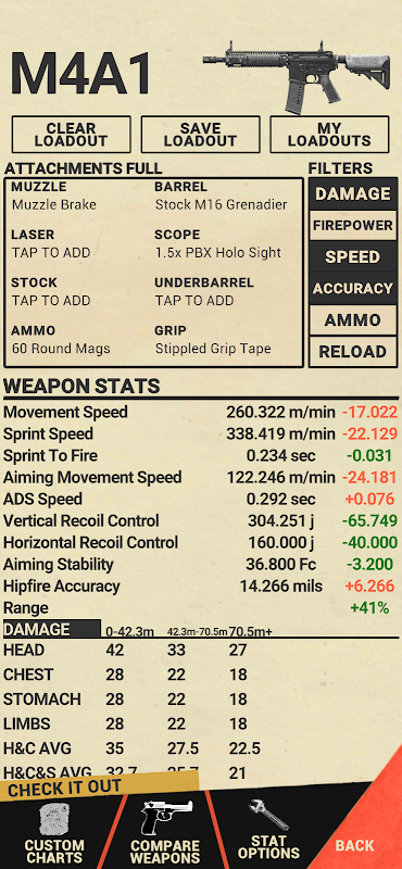 * WEAPON STATS - Check the latest detailed weapon stats the game doesn't tell you including: Damage across multiple range, TTK, DPS, ADS Speed, 4 types of Reload Speeds, Movement Speeds, Recoil, Sway & much more.