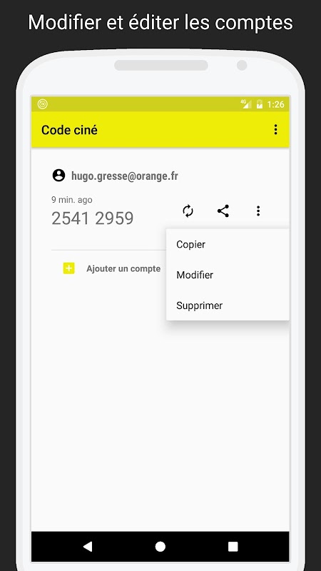 Code ciné est une application gratuite et open-source (FOSS) non-officielle qui récupère pour vous vos codes cinéma avec votre compte Orange Cinéday (tout droit réservés) le mardi matin à 9h. Vous pouvez ajouter une infinité de compte Orange et les données de vos comptes sont conservées en sécurité avec les dernières normes de sécurités (AES 128, CBC, PKCS5 padding with integrity checking in the form of a SHA 256 hash).
