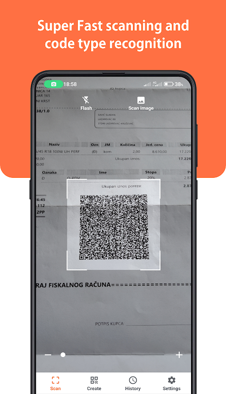 Easily scan and read all types of QR codes and other 2D codes with CodeBot. The scanner automatically recognizes the code type, so you don't have to worry about it. The QR scanner recognizes the content of the code, whether it's a URL link, WiFi connection, location, receipt or coupon, and helps you open or redeem the scanned content. QR & Barcode Scanner reads all barcode formats live from the front or rear camera, but also reads images from the gallery. Search code content on the web, share or save as text or image on your device, export as a PDF document or just print.